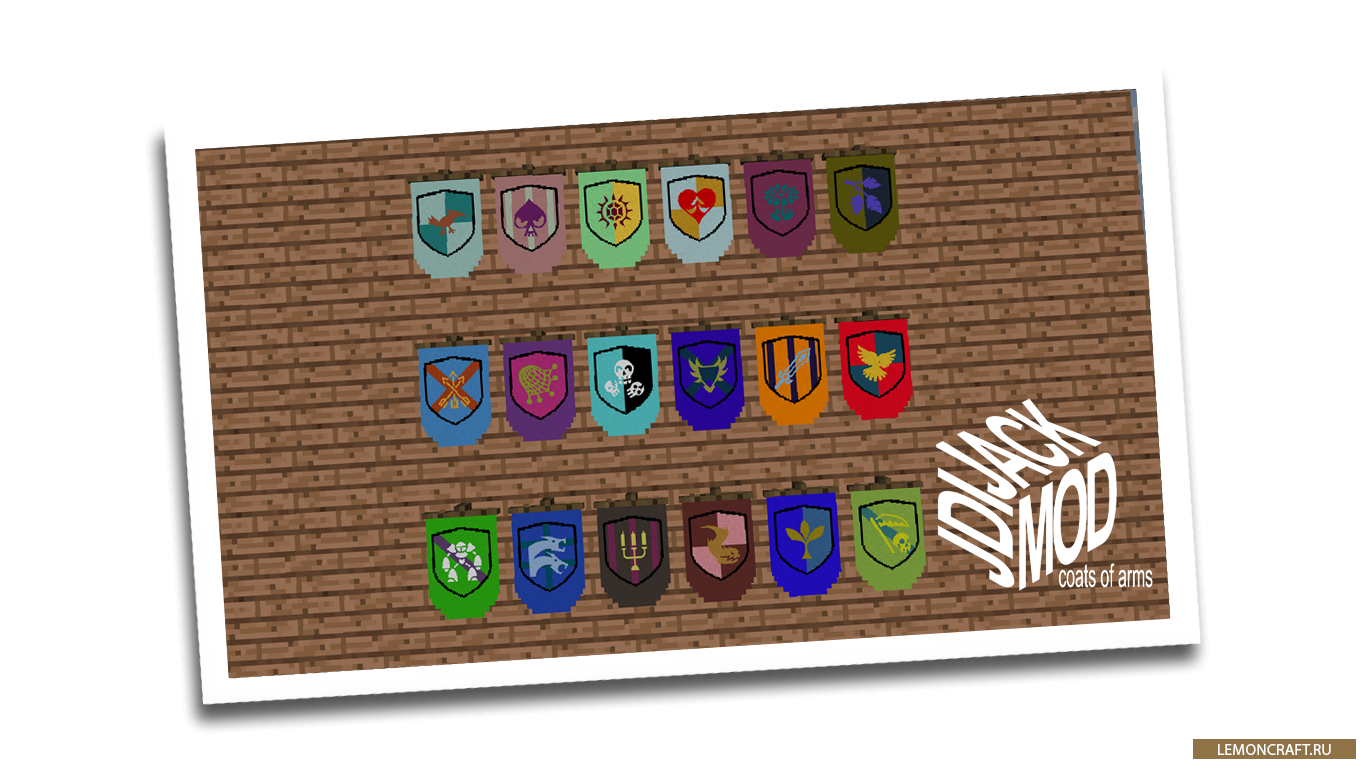 Обозначьте свою территорию с помощью мода JJ Coats of Arms установив или повесив свои индивидуальный герб. Стиль герба полностью настраивается и вы можете все сделать именно так, как вам больше нравиться.